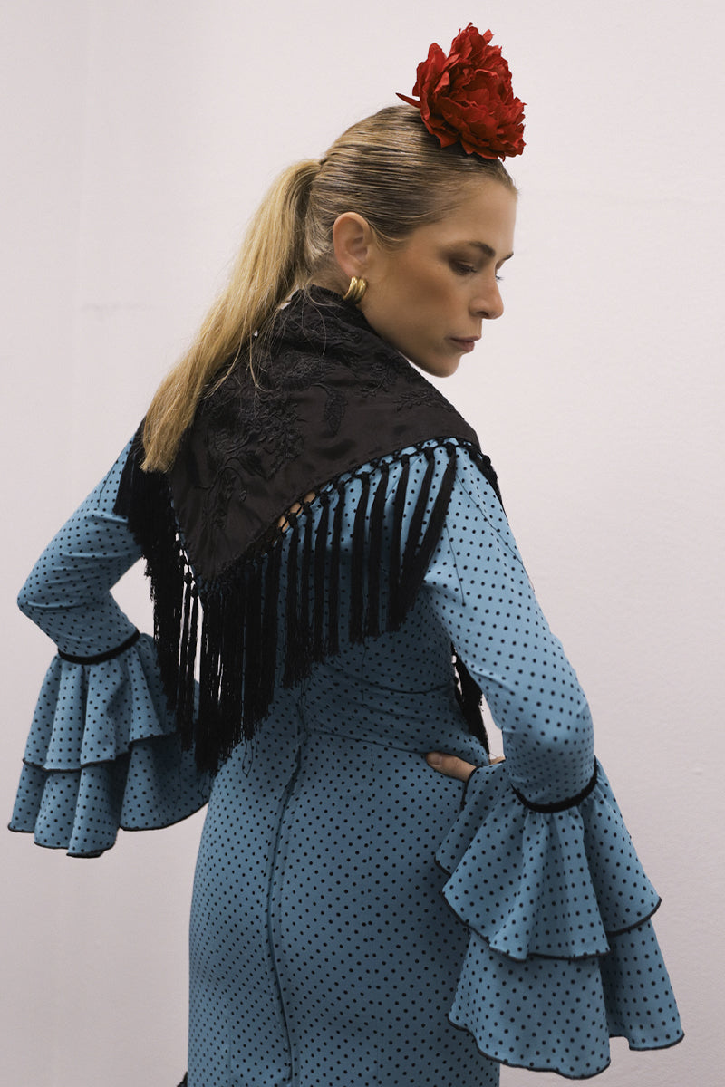 Modelo: traje color turquesa lunar negro y picos con terciopelo