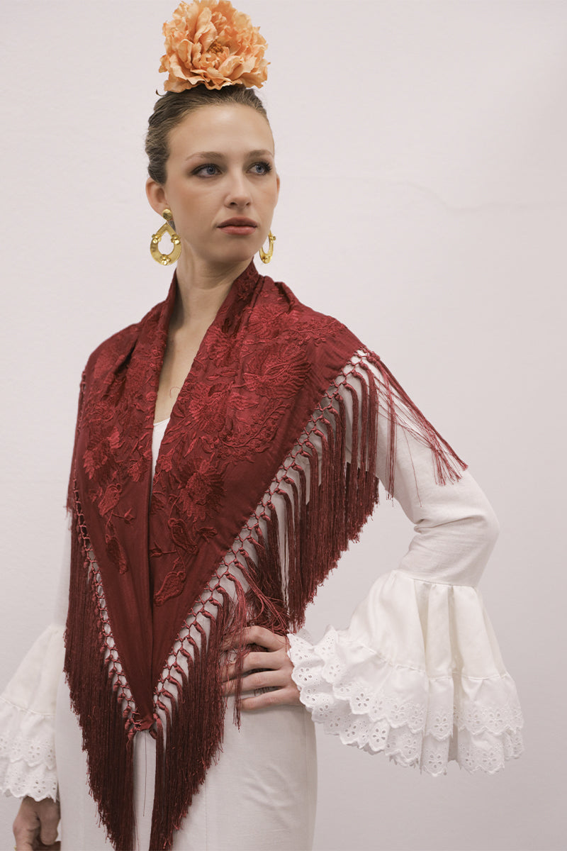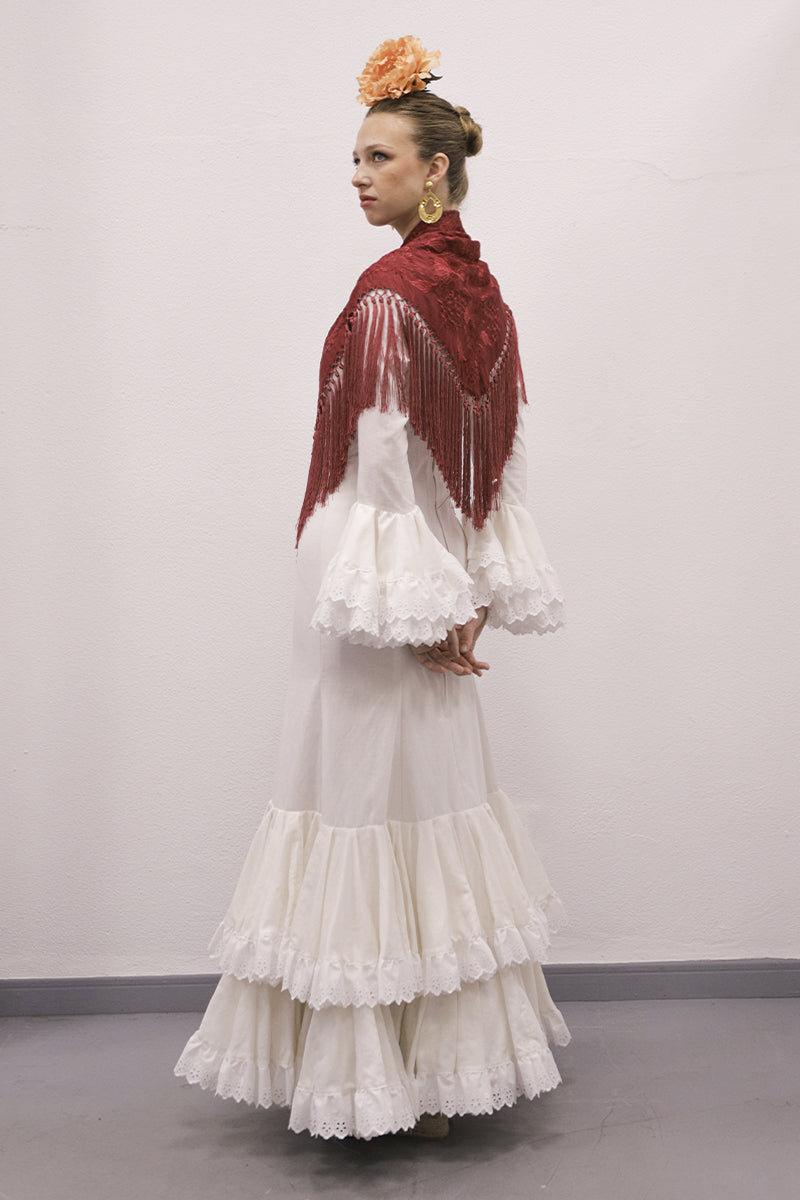 Modelo: traje enterizo de lino con tirada bordada